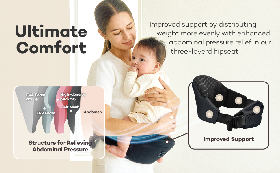 Instead of holding your baby with just your arms, the non-slip hipseat lets them sit naturally, reducing strain on your body.